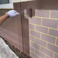 外壁の下半分はタイルを張ったかのように見えますが・・・実は、マスキングテープを駆使してタイル調に塗り仕上げています‼