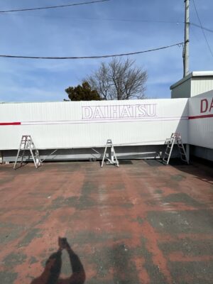 角田市 (有)カーショップエフ様 囲い看板修繕工事